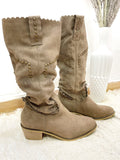 Bota Campera en color taupé, un color neutro que combina a la perfección con cualquier tipo de look. Son blanditas y tienen caída, no son rígidas. Tienen tachas doradas mate en la caña y un tacón de 4 cm horma súper cómoda tallan con el número