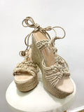 Cuñas de tiras en color beige. Van atadas a poerna o tobillo. Son cómodas. Plataforma delantera 4cm plataforma de atrás 11 cm.