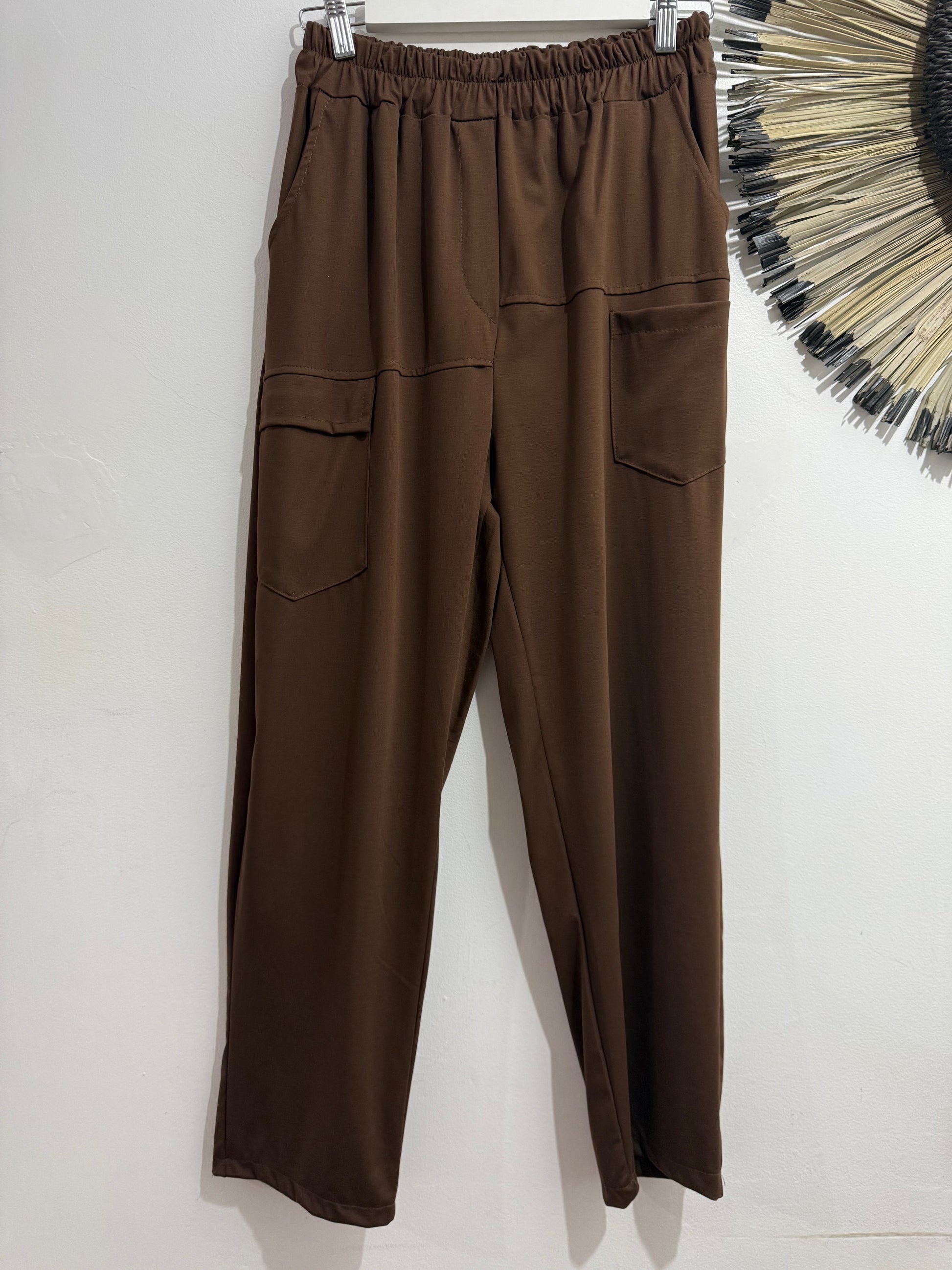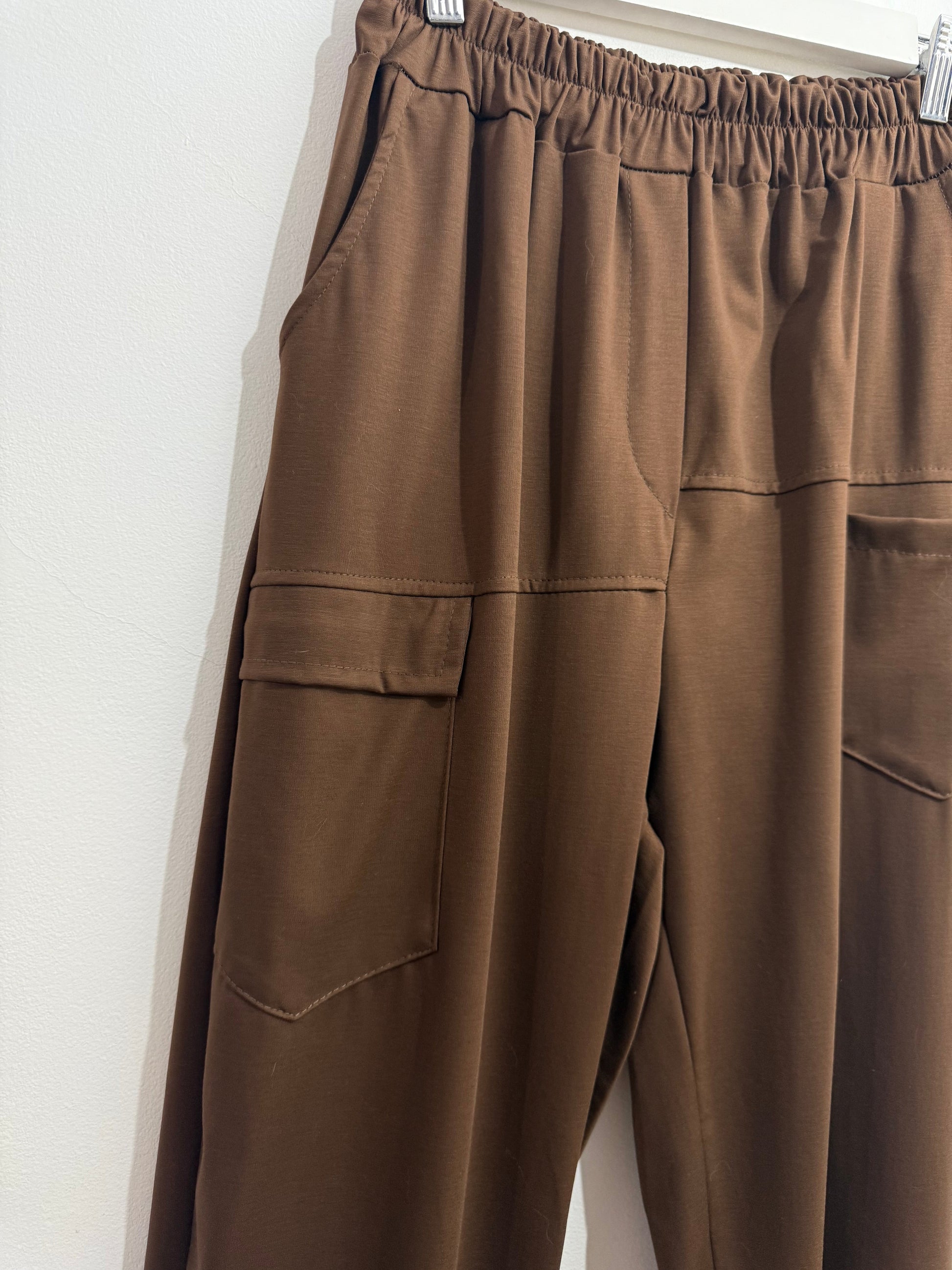 Pantalon de punto frío súper finito. Tiene caída. Es de tipo Boyfriend y tiene goma en la cintura, se adapta genial. Tiene bolsillos alteres y un bolsillo tipo cargo a un lateral.