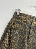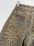 Vaquero de tipo ballon con estampado animal print. Es elástico y de tiro medio alto. Tiene bolsillos en parte delantera y trasera.